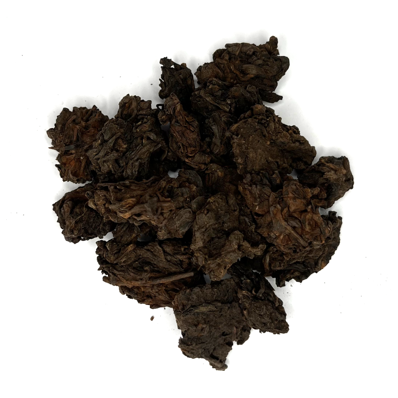 Лао Ча Тоу, или «Старые Чайные Головы» – уникальный шу пуэр 2001 года, представляющий собой комки чайных листьев, естественным образом сформировавшиеся в процессе ферментации. «Головы» ценятся за особую концентрированность вкуса и удобство хранения. Более 20 лет выдержки придали этому чаю зрелый и сложный характер. В аромате чувствуются ноты древесины, орехов с лёгкими камфорными оттенками. Вкус мягкий и бархатистый – тёмный шоколад, финики, грецкие орехи, с едва уловимой землистостью, древесной глубиной и долгой сладостью в послевкусии. Заваривается плотно, настой густой, почти «нефтяной»: лучше всего чай показывает себя при заварке в термосе. Отличный чай для ценителей выдержанных пуэров.