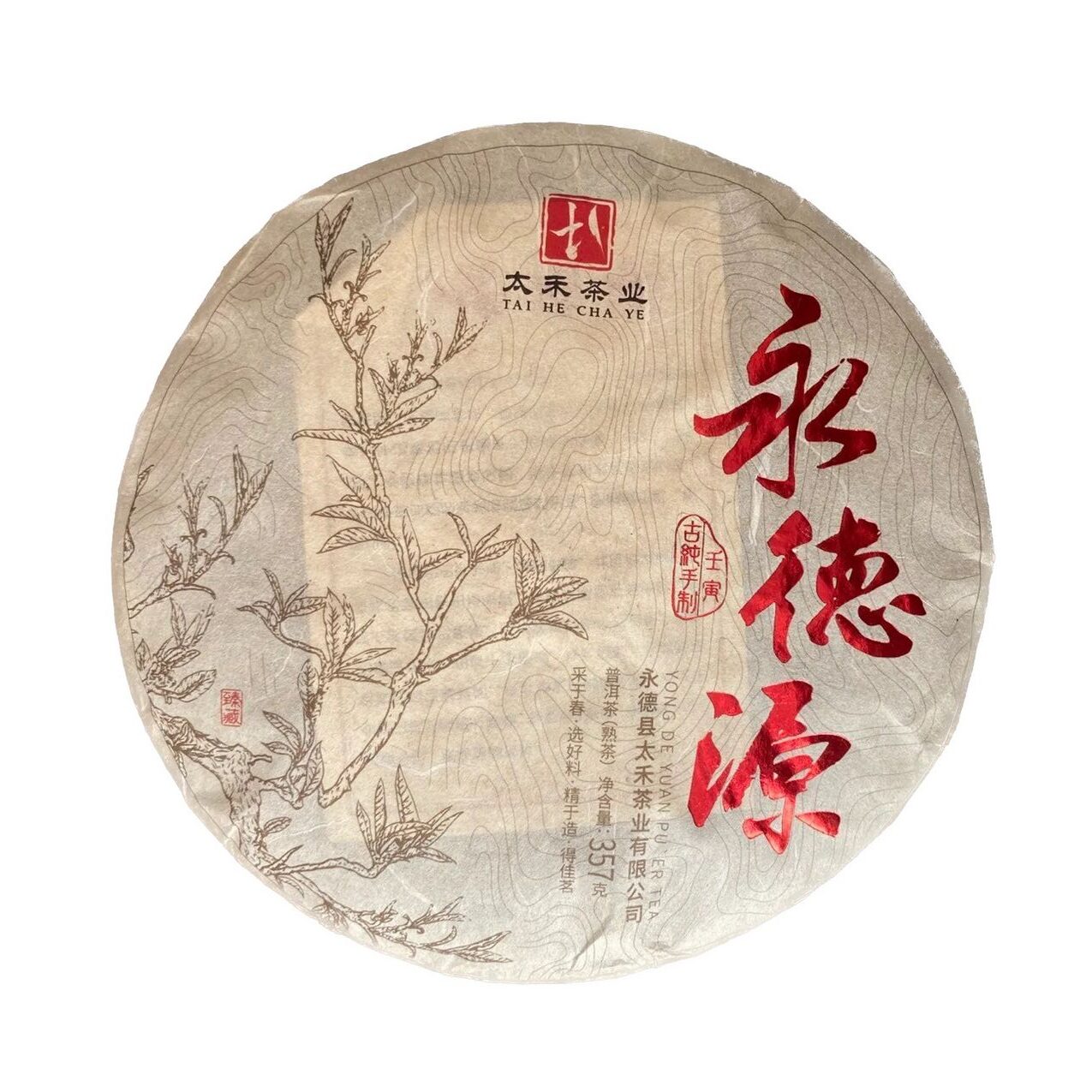 Шу пуэр от Фабрики ТайХэ из уезда Юндэ. Сырье для этого чая собирают с деревьев возрастом старше 100 лет, растущих на высоте порядка 1000 метров над уровнем моря. Сырье из Юндэ славится своей плотностью, чай обладает насыщенным вкусом с лёгкой горчинкой и древесно-ореховой гаммой. В аромате помимо ягод присутствует нотка молочного шоколада. Отличный образец молодого шу, который приятно пить, но можно также положить для дальнейшего созревания.